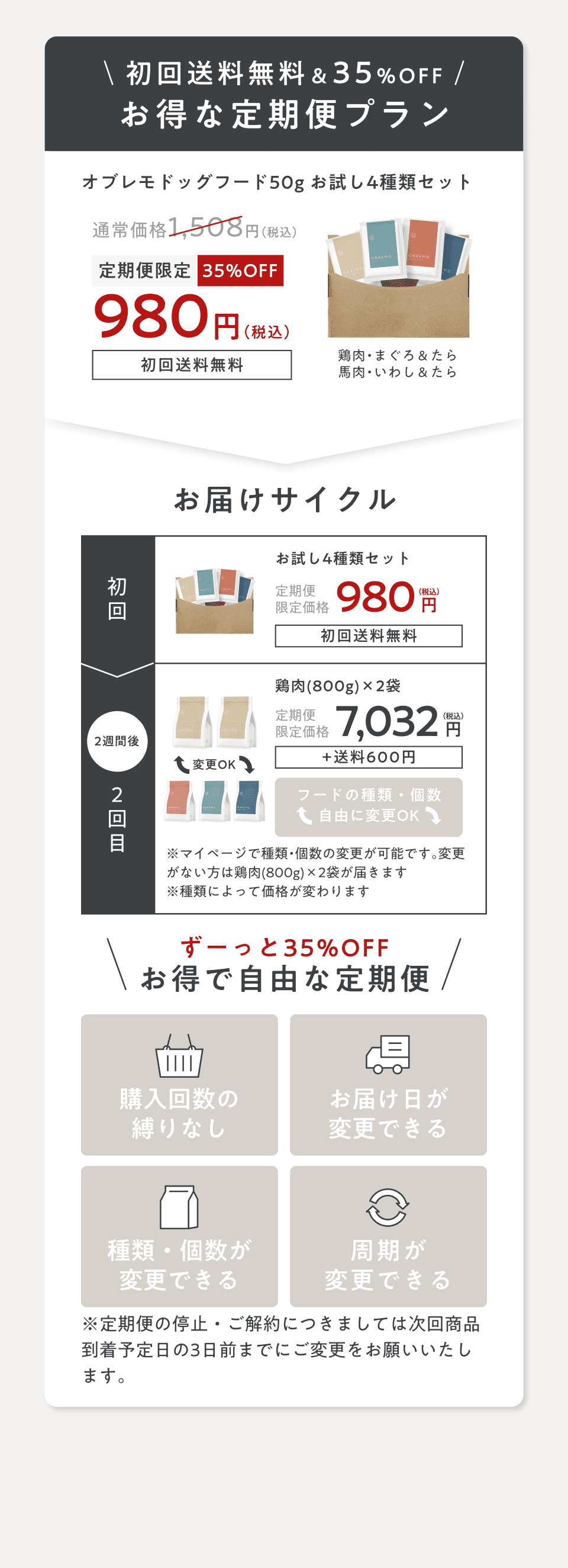 定期便は、「〇ヵ月継続が絶対条件」といった制約は一切ございません。マイページにて定期便を停止することが可能です。