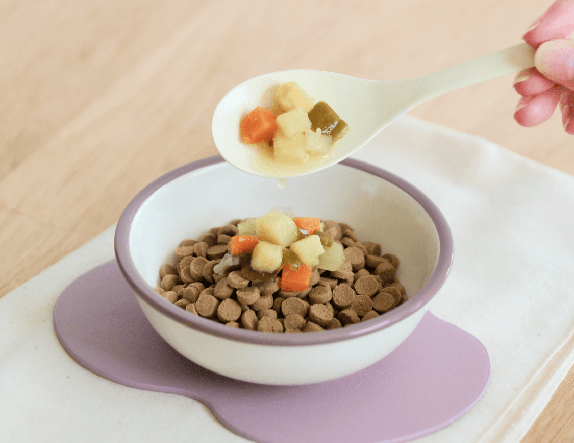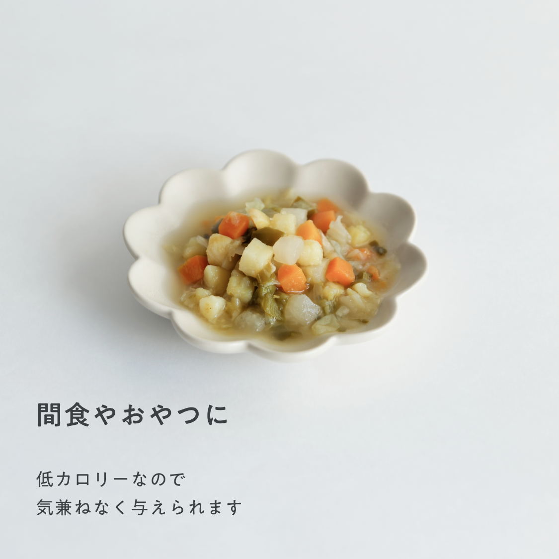 普段あまり水を飲まないワンちゃんも「とろとろ野菜煮込み」を毎日の食事にトッピングすることで、気軽に水分補給することができます。
